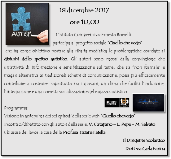 Sei in > Circolari e comunicazioni > Lunedì 18 dicembre Progetto sull’autismo “Quello che vedo”